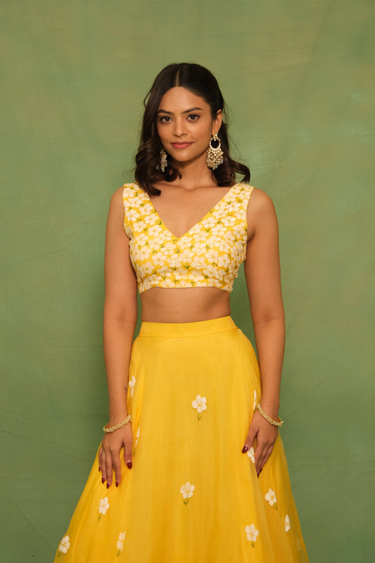 Yellow Hand-dyed Maslin Bandhej Suit Set