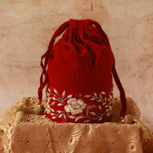 Lagan Red Bridal Zardozi Embroidered Potli