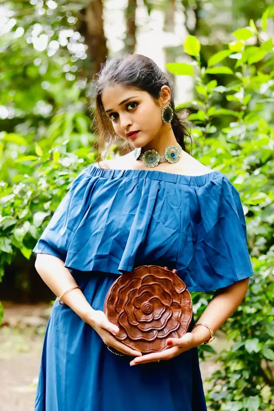 The Royals Rose Handcarved Sheesham Wood Handbag