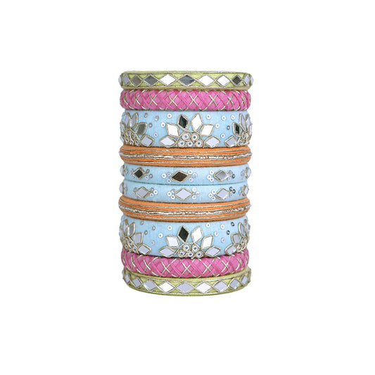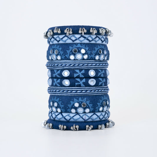 Godavari Ghungroo & Coin Detailing Blue Bangle Set
