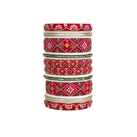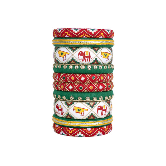 Nishka Red & Green Bandhani Pattern Bangle Set