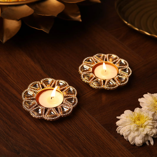 Brass Colored Diya - Set of 4