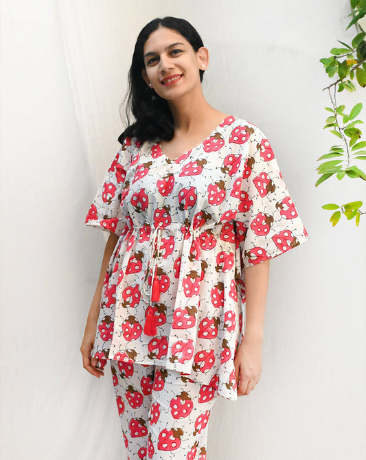 Cherries Short Kurta Pyjama - Soft Cotton Co-ord Set