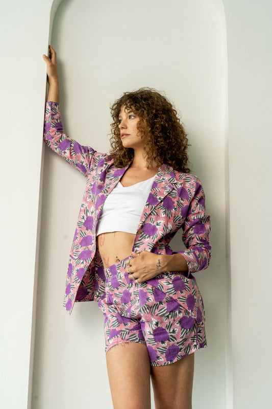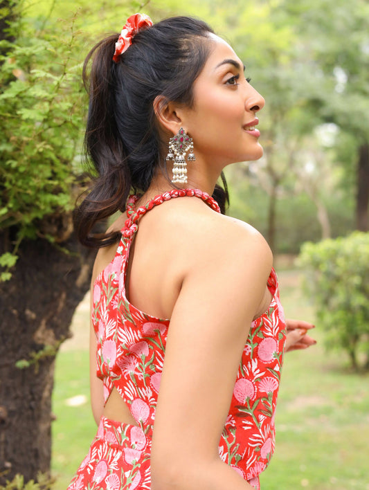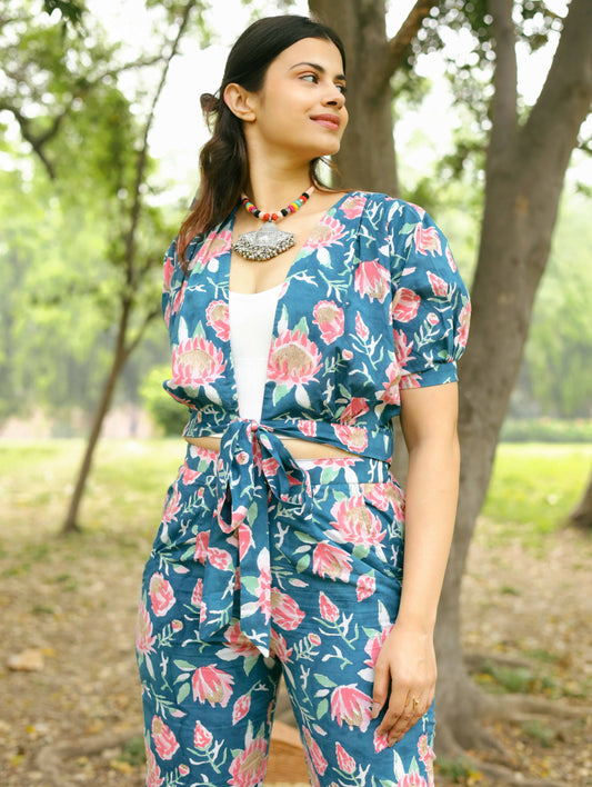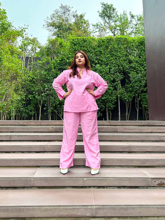 BubbleGum Pink Ikat Bardot Top with Frill Band Pants