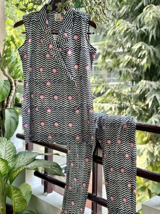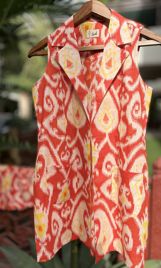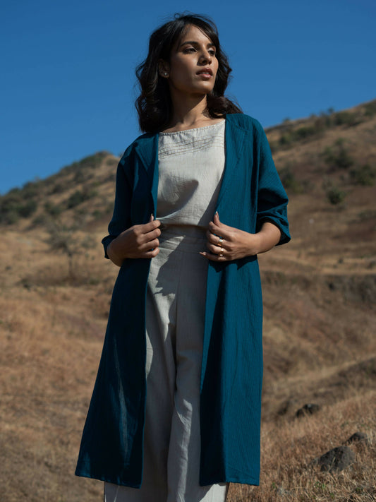 Deep Blue Ikat Double Breasted Long Blazer Set