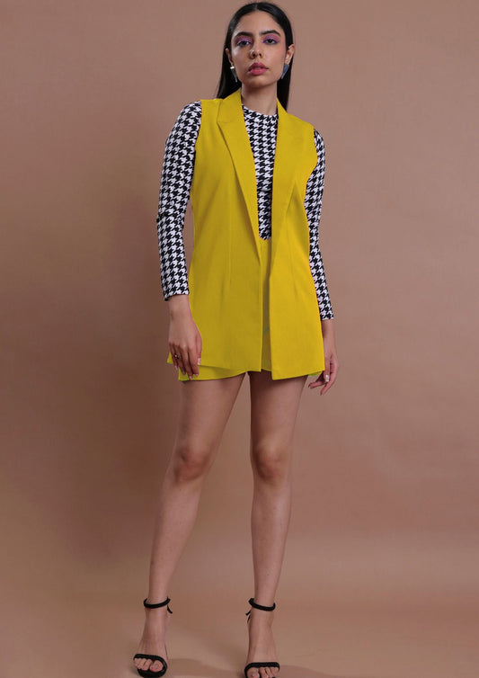 Black & White Chevron Double Breasted Long Blazer Pants Set