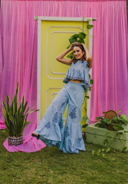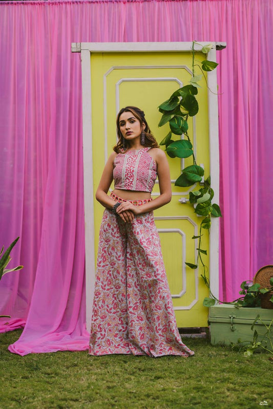 Noor' Halter Neck Top & Palazzo with Mirror Belt