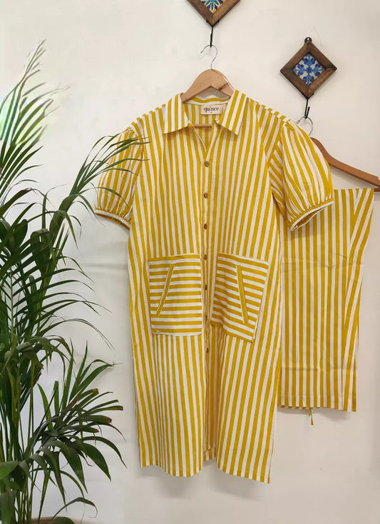 Mustard Yellow Side Line Hand-embroidered Co-Ord Set