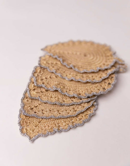 Ziba Leaf Coasters (Set of 6) ~ Silver Beige