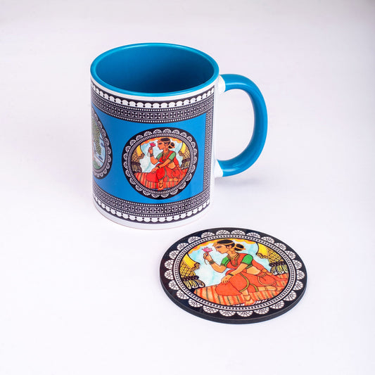 • Paripatra Pattachitra Mug with Coaster - Blue