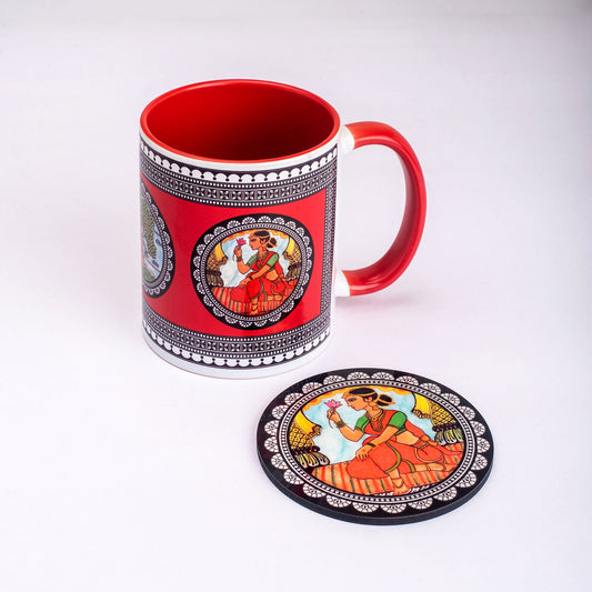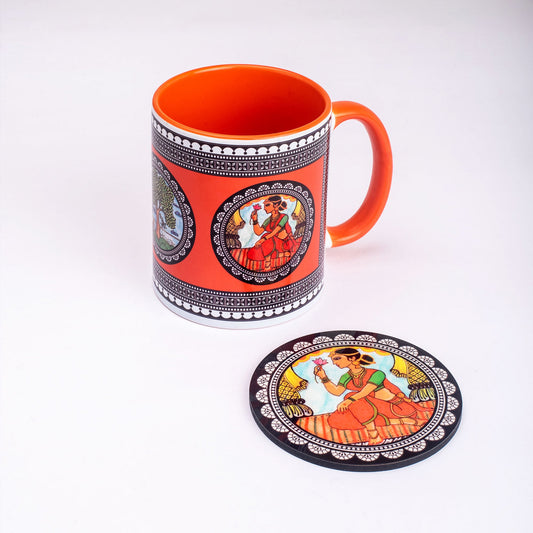 • Paripatra Pattachitra Mug with Coaster - Orange
