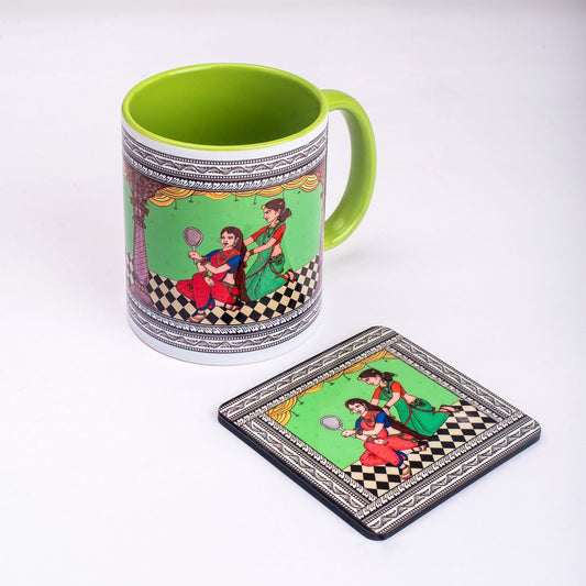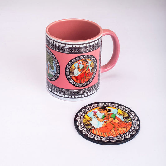 • Paripatra Pattachitra Mug with Coaster - Pink