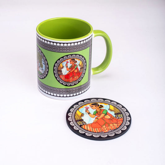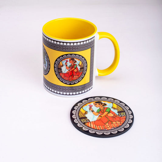 Paripatra Pattachitra Mug with Coaster - Yellow