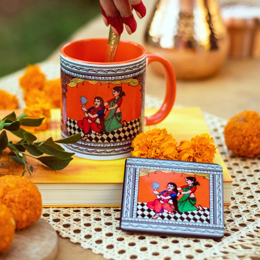 Shringaar Pattachitra Mug with Coaster - Orange