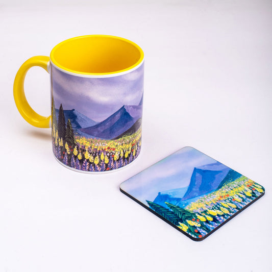 Picturesque Landscape Mug with Coaster - Yellow