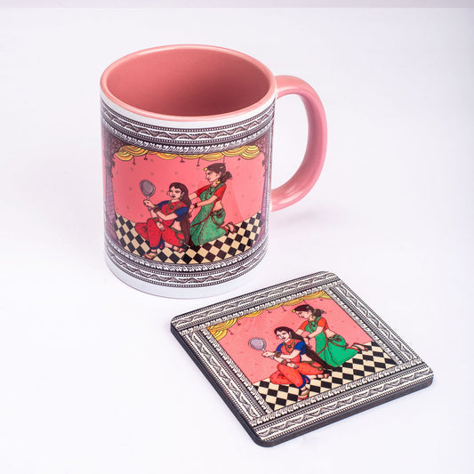 Shringaar Pattachitra Mug with Coaster - Pink