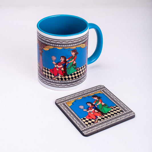 Shringaar Pattachitra Mug with Coaster - Blue