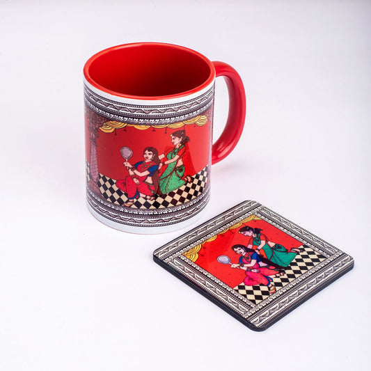 Shringaar Pattachitra Mug with Coaster - Red