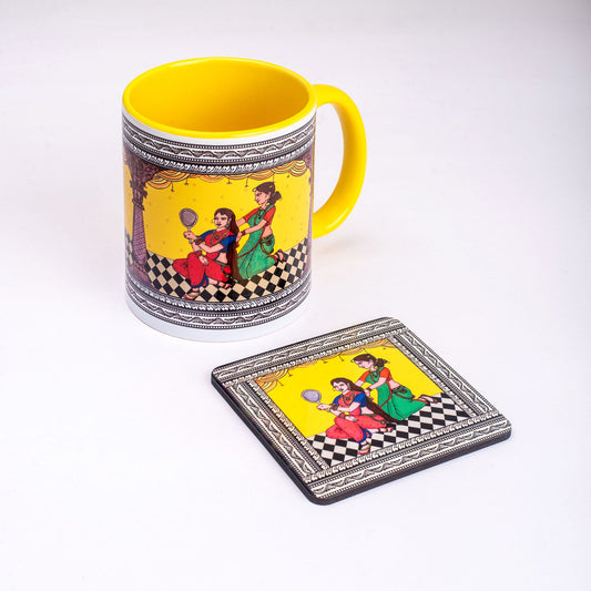 Shringaar Pattachitra Mug with Coaster - Yellow