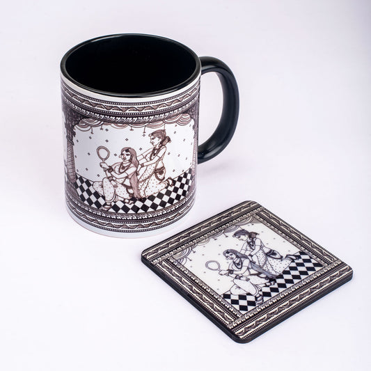 Shringaar Pattachitra Mug with Coaster - Black