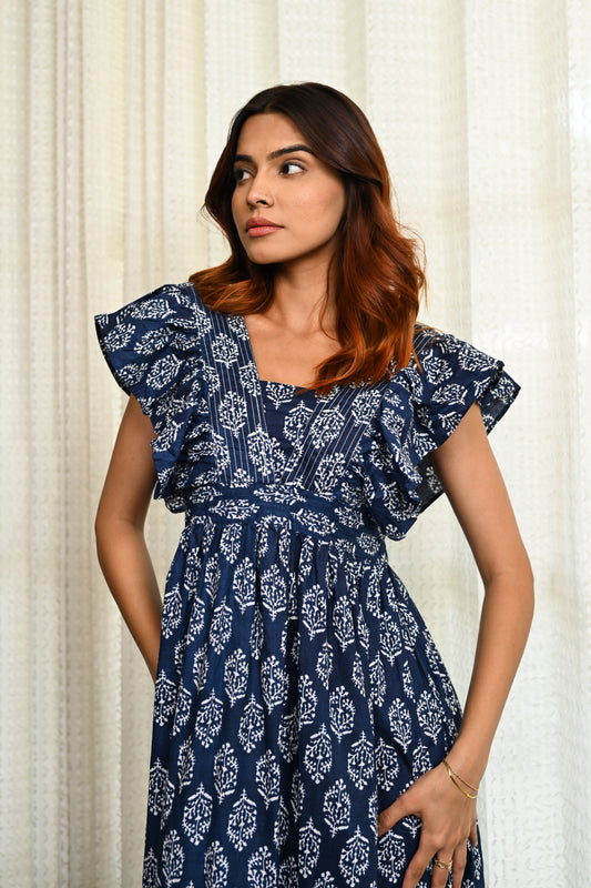 Navy Bloom Cotton Midi Dress