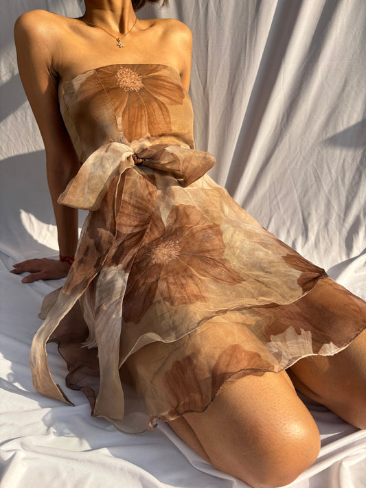 Peony Puff Flare Dress With Detachable Puff Sleeves