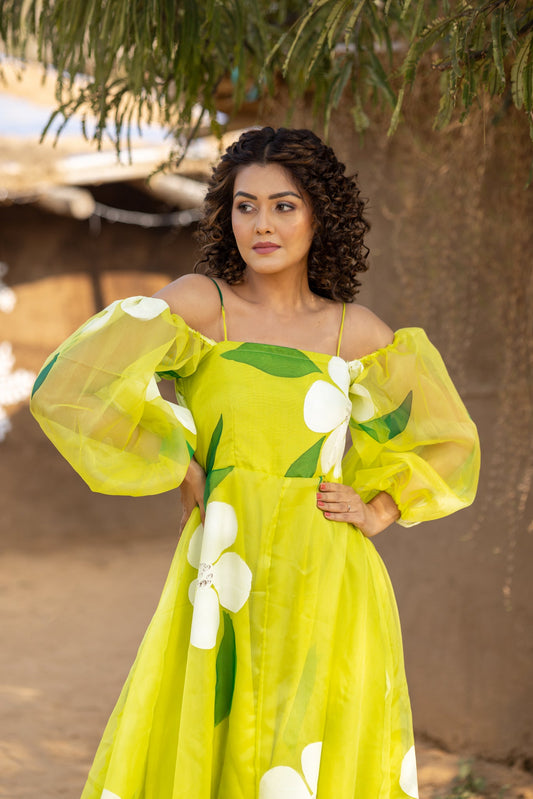 Mirabella Printed Cotton Midi Dress with Balloon Sleeves