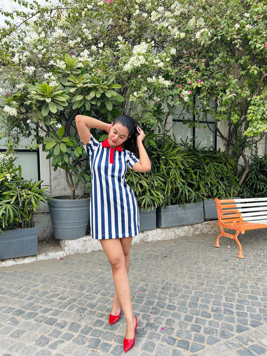 The Classic Striped Dress with Red Collar