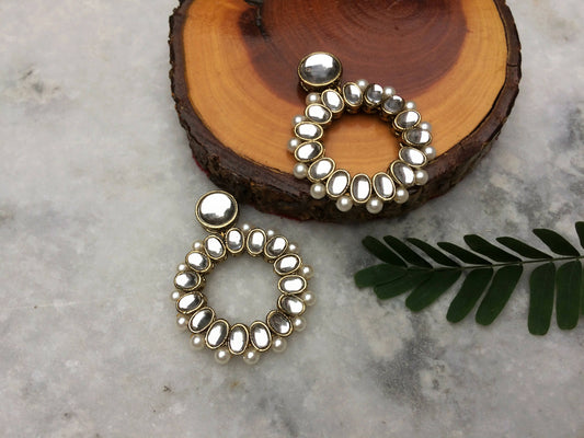 Pearl and Kundan Hoop Earrings