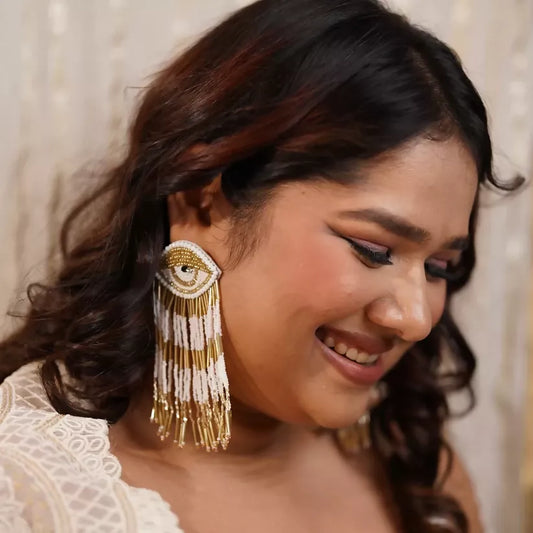 Nazariya White Evil Eye Handmade Beaded Earrings