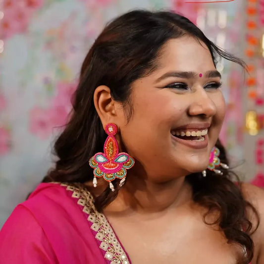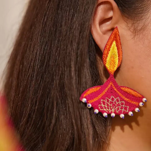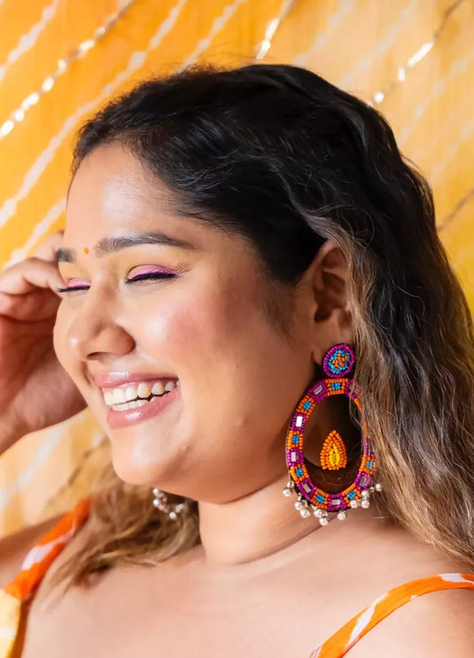 Aanch Diya Shaped Handmade Beaded Earrings