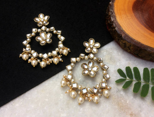 Kundan Flower Chandbali Earrings