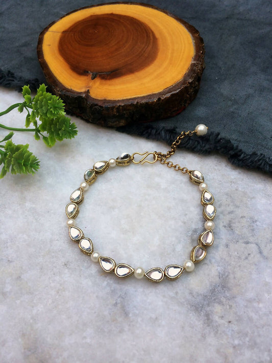 Drop Kundan and Pearl Bracelet