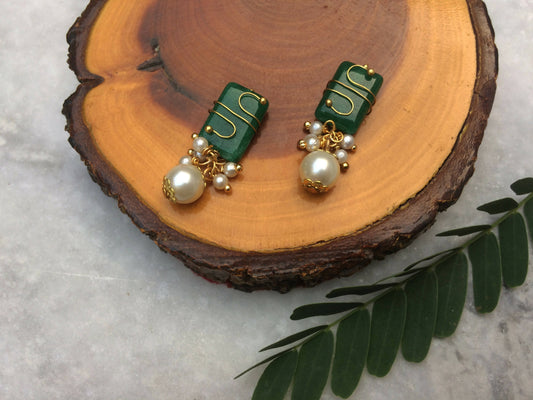 Stone and Pearl Stud Earrings