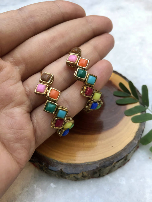 Kundan Square Hoop Earrings