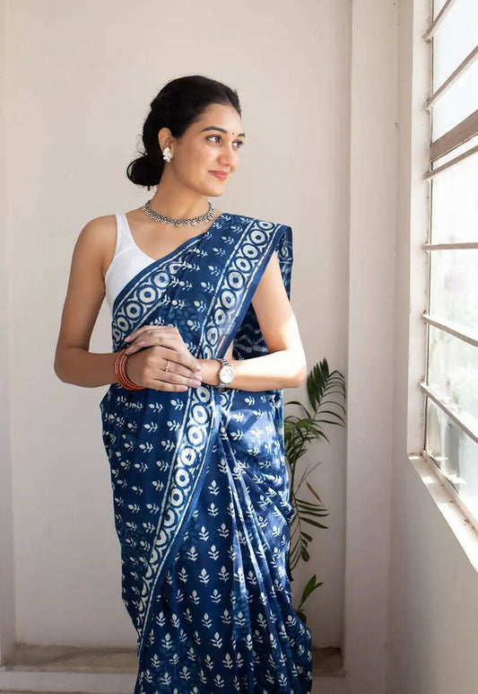 Bombay Indigo Hand Block Saree
