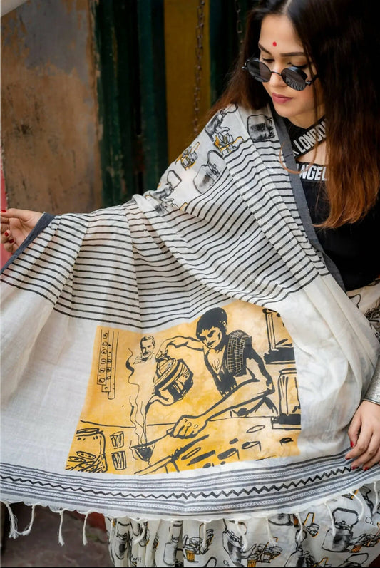 Garam Chai Cotton Printed Saree
