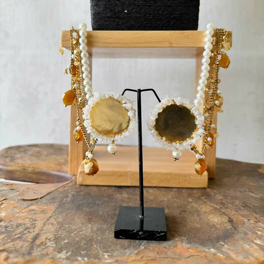 Chand Aur Phool White Stones Earrings Set