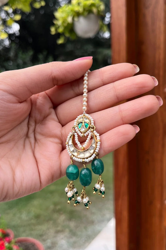 Sage Green Onyx Polki Sheeshpatti cum Choker