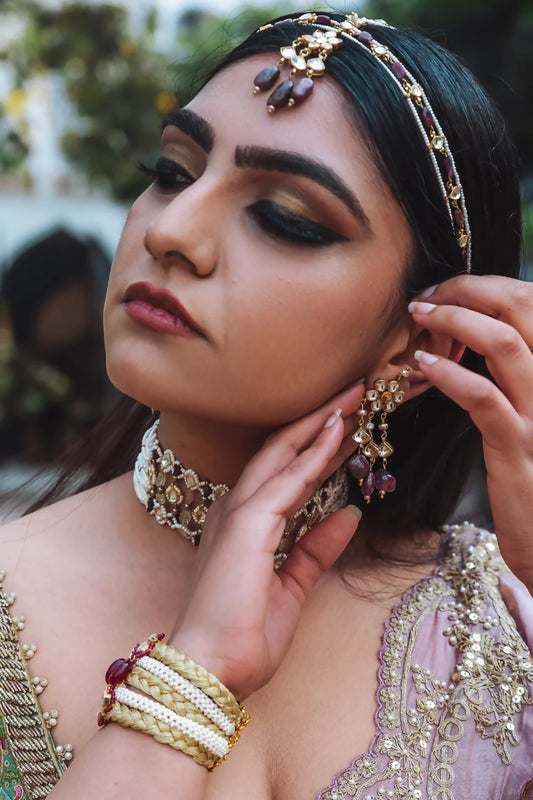 Ruby Red Gul Sheeshpatti cum Necklace set