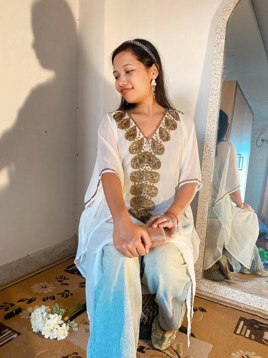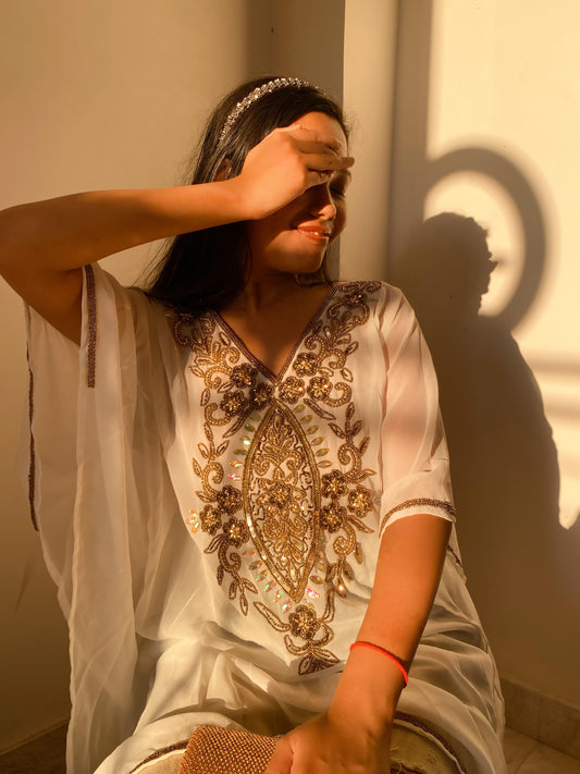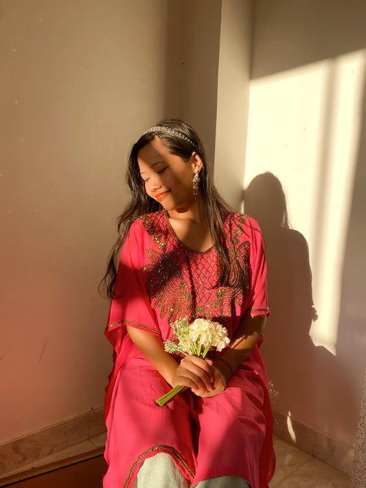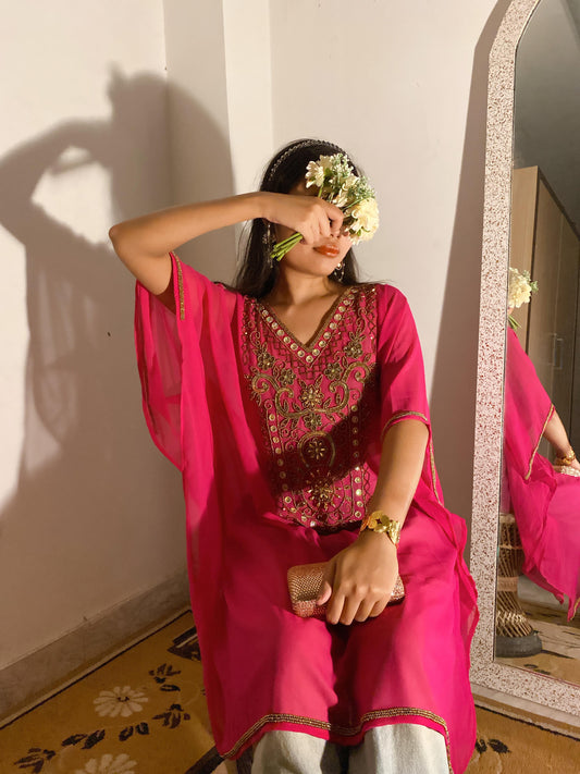 Nargish Fuchsia Pink Georgette Short Kaftan