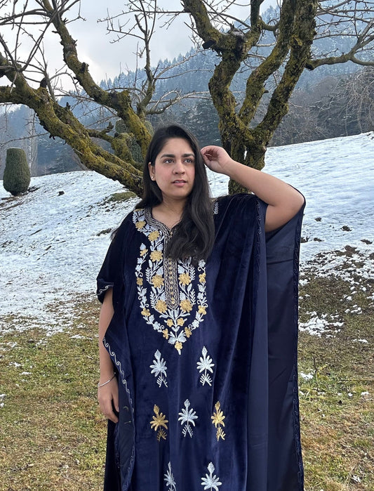 Deep Blue Zari Velvet Kashmiri Kaftan