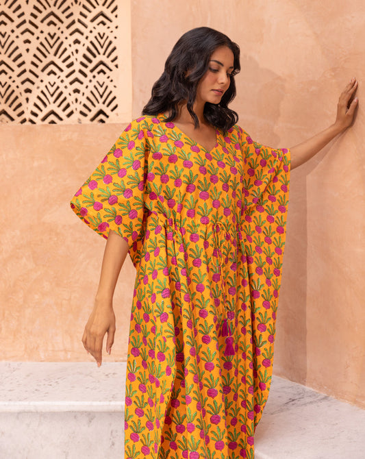Beet the Root Hand Block Printed Cotton Kaftan