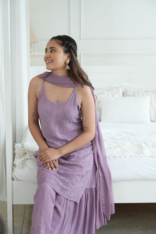 Anaya Chikankari Noodle Strap 3 Piece Garara Set