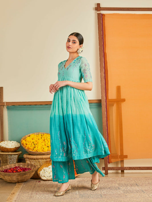 Aabiya Blue Ombre Chanderi Kurta Set