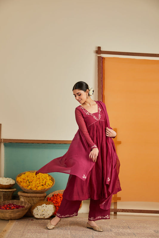 Rozina Maroon Chanderi Kurta Set