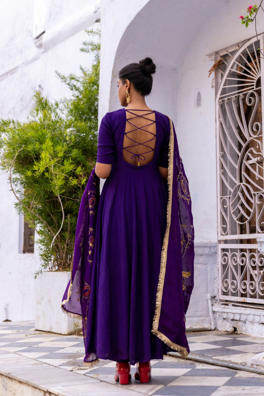 Ujjwala Purple Crepe & Organza Anarkali Set