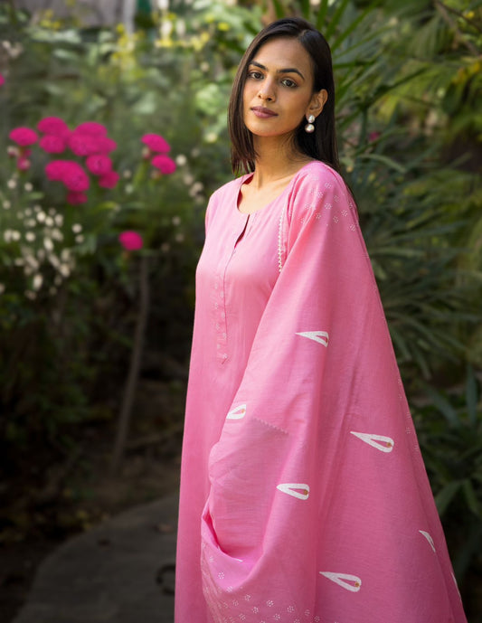 Mulberry Pink Block Printed Cotton Kurta Set