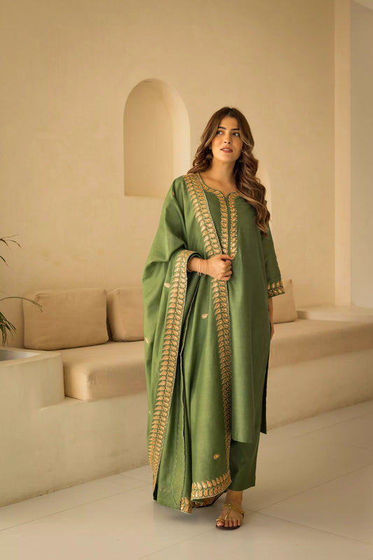 Regal Emerald Zardosi Chanderi Kurta Set