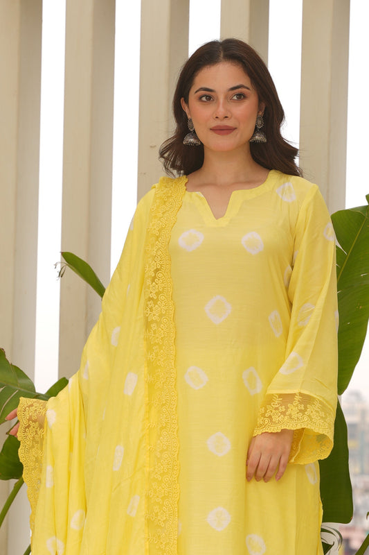 Yellow Hand-dyed Maslin Bandhej Suit Set